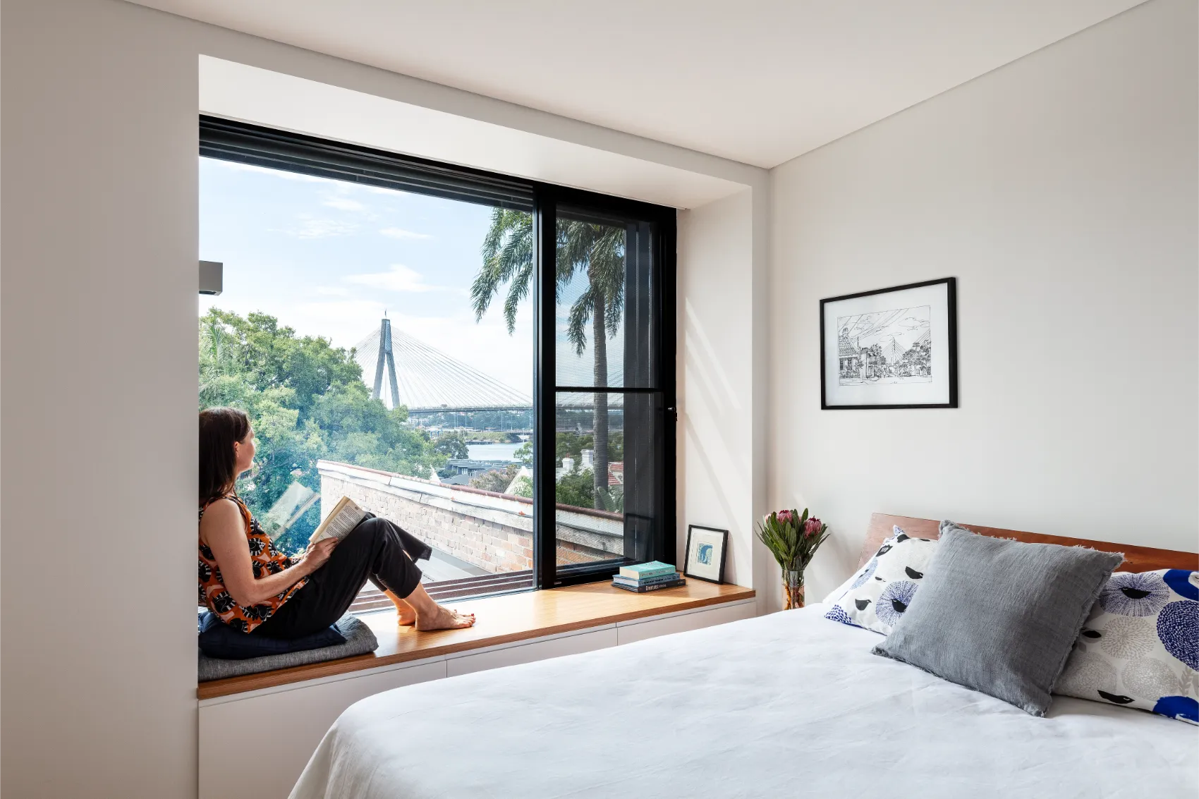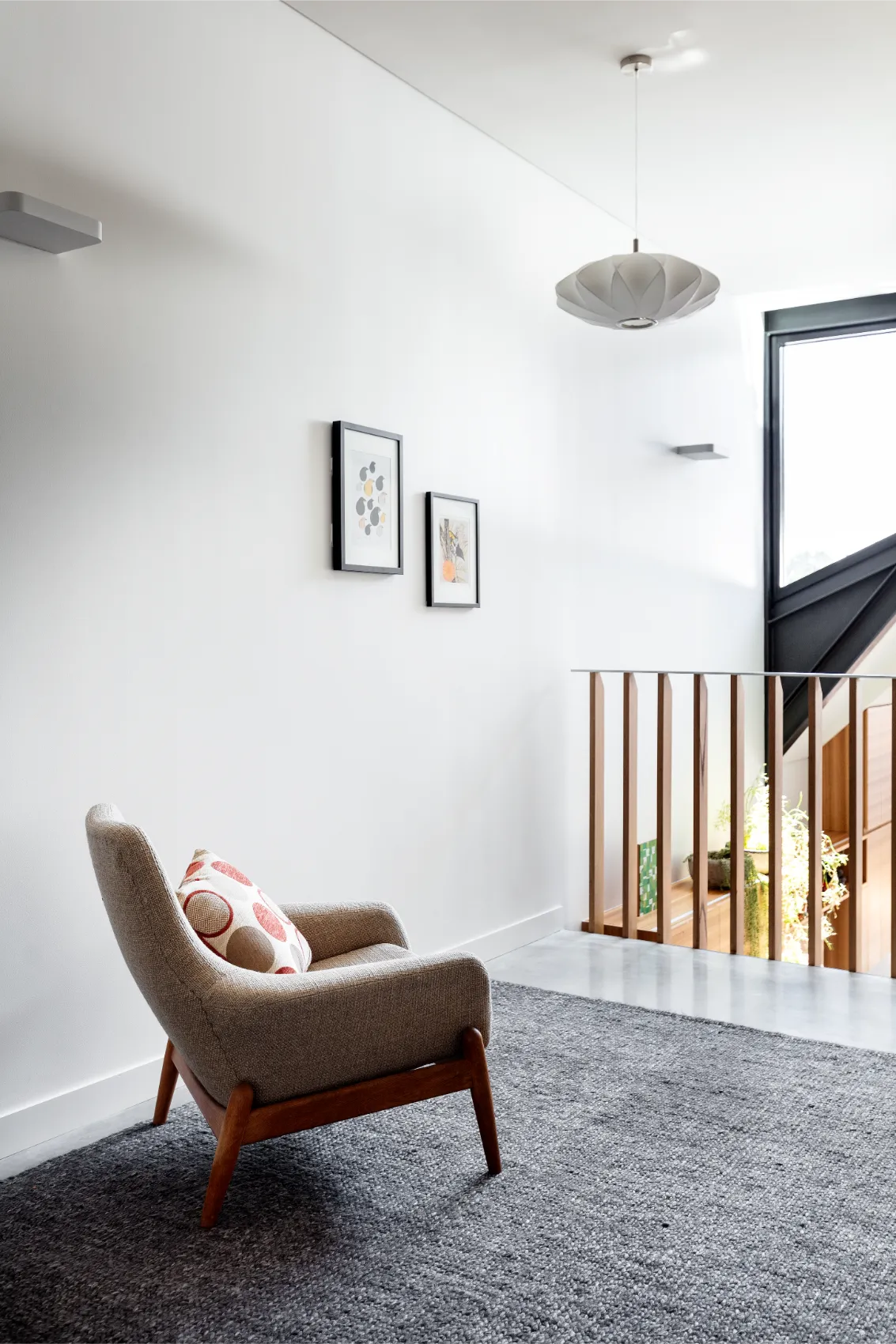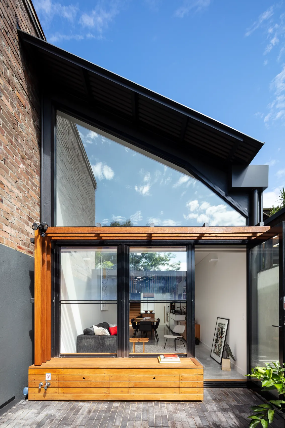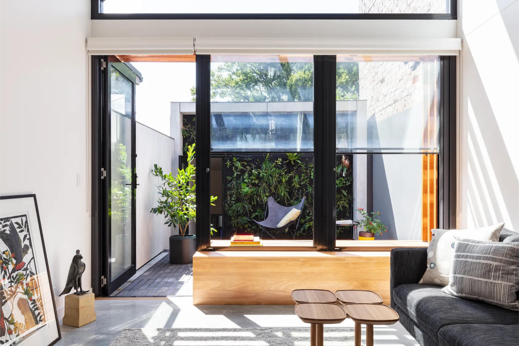Glebe Terrace transforms a steep, narrow site into a light-filled, sustainable home. Centred around a courtyard and guided by passive solar design, it balances heritage context with contemporary living, combining thermal comfort, natural ventilation, and refined detailing to create a connected home that is both practical and environmentally sensitive.