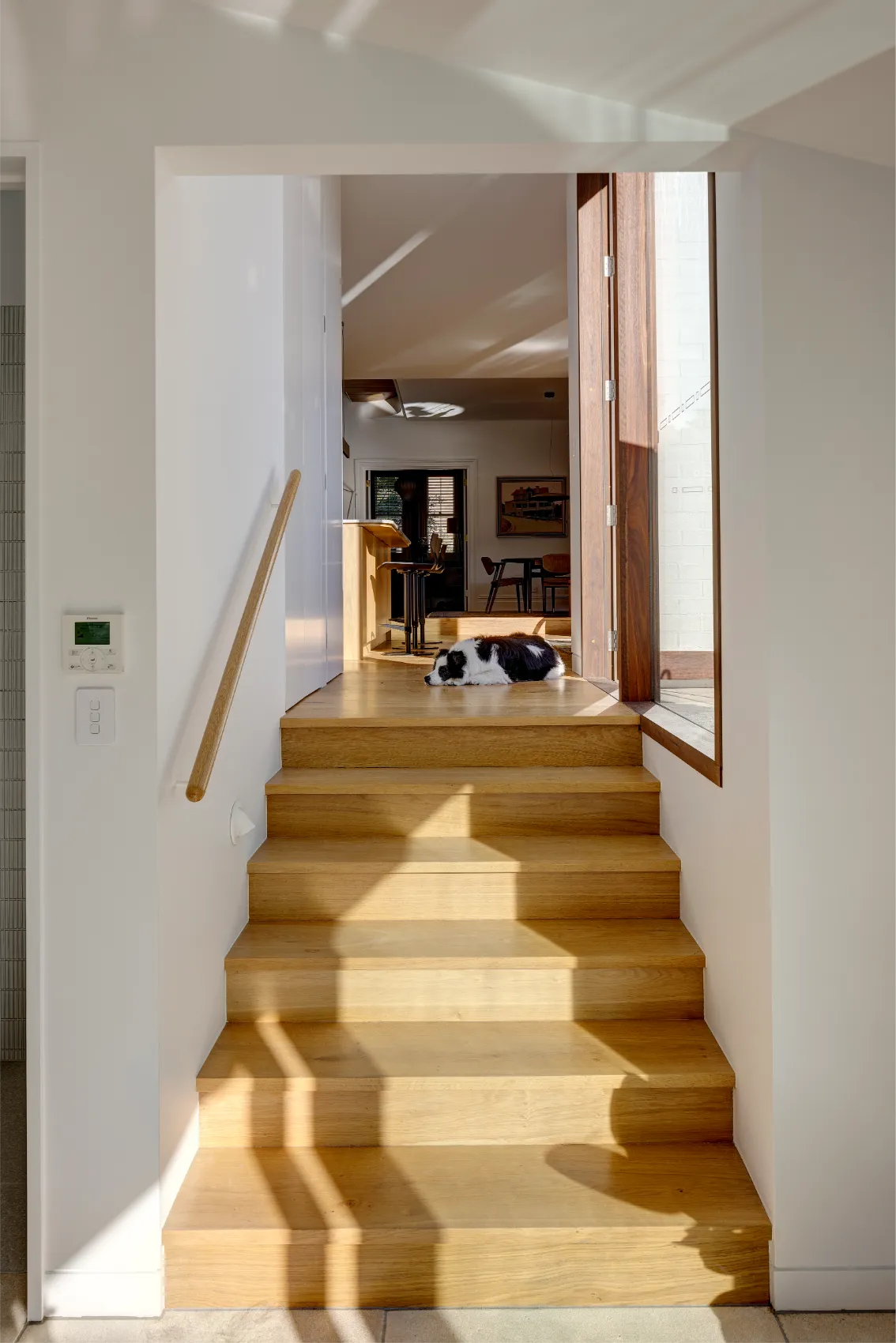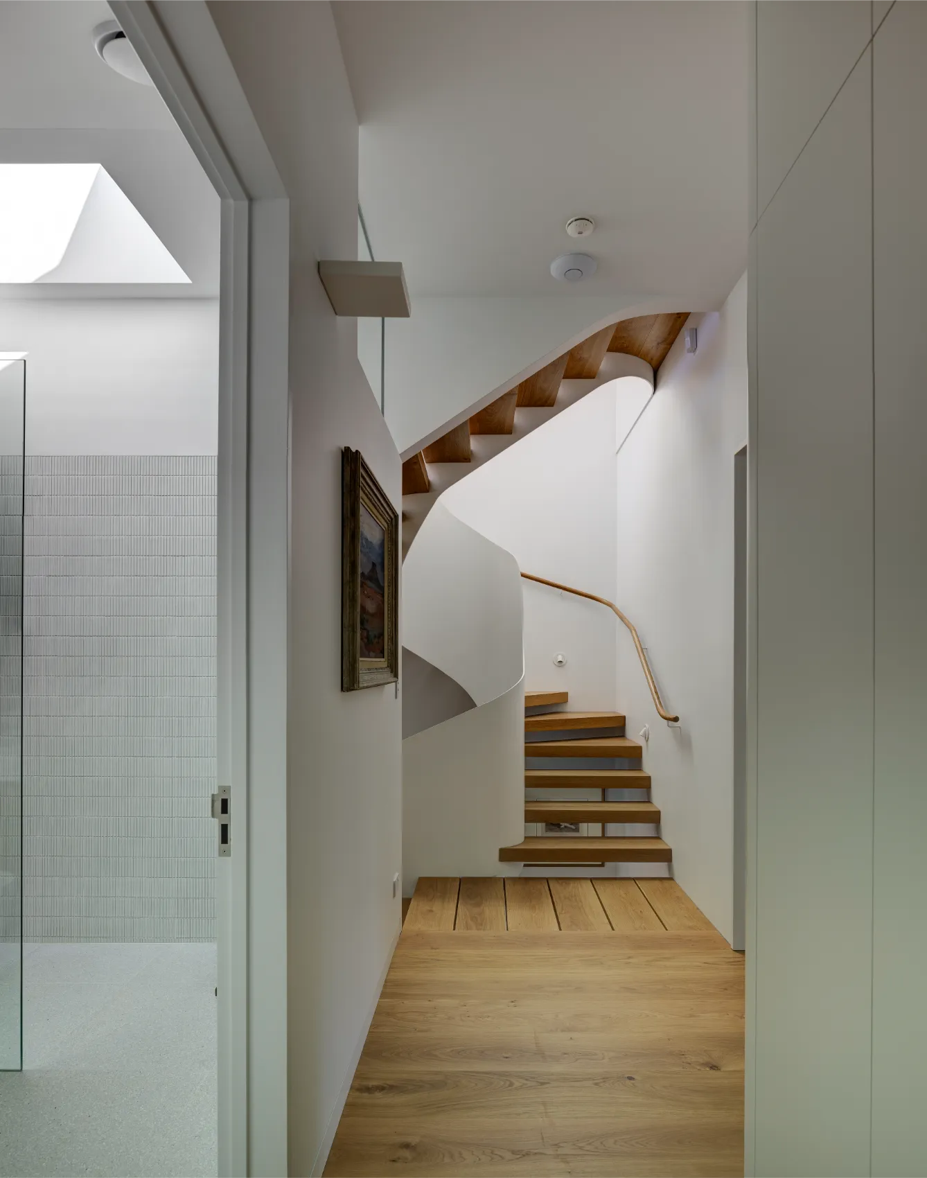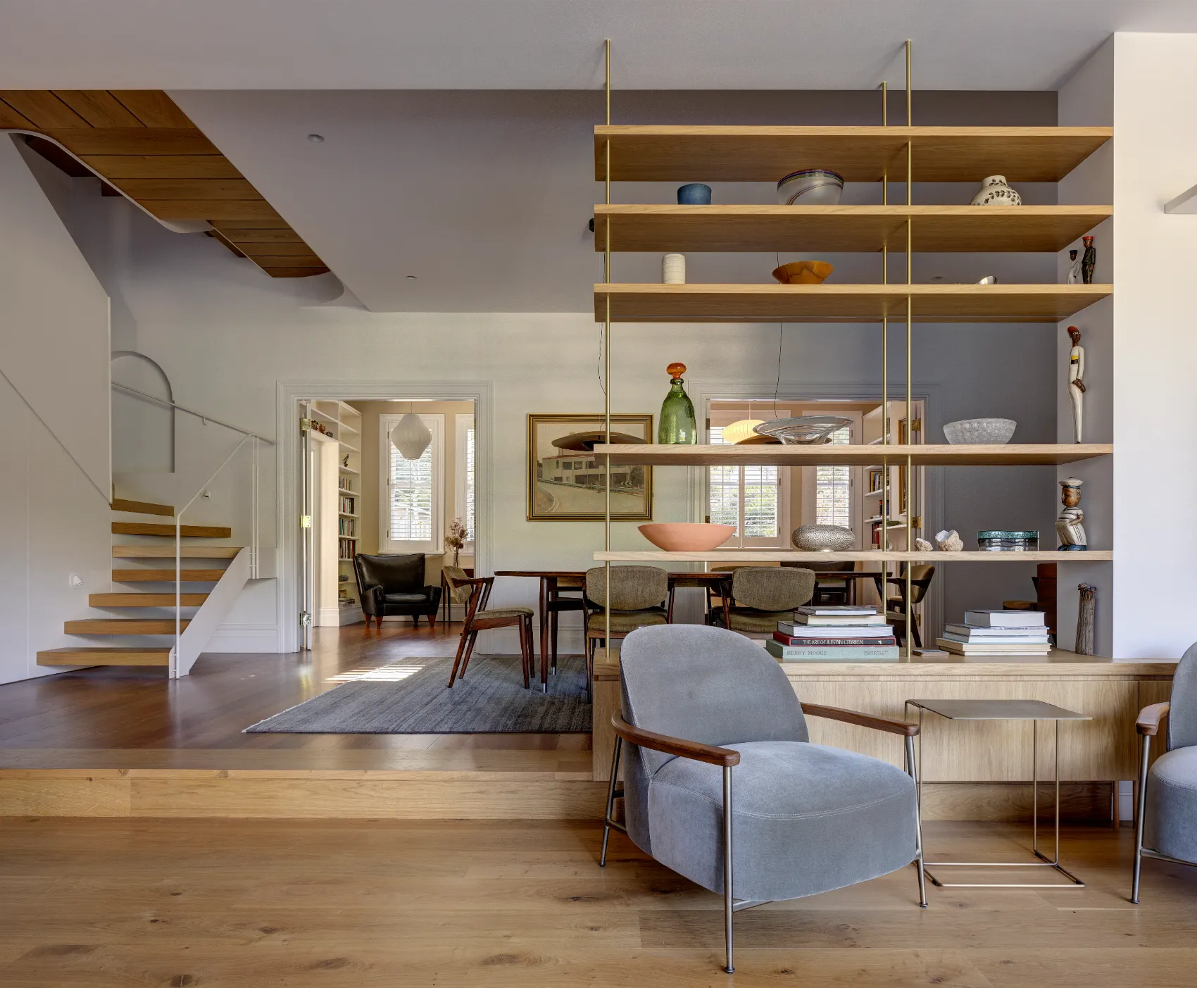 Paddington Terrace unifies a Victorian original and a 1980s twin into a light-filled retreat overlooking Trumper Park. Defined by a sculptural staircase and finely crafted timber details, the home balances heritage constraints with modern living, expanding space, connection, and views while preserving privacy and character.